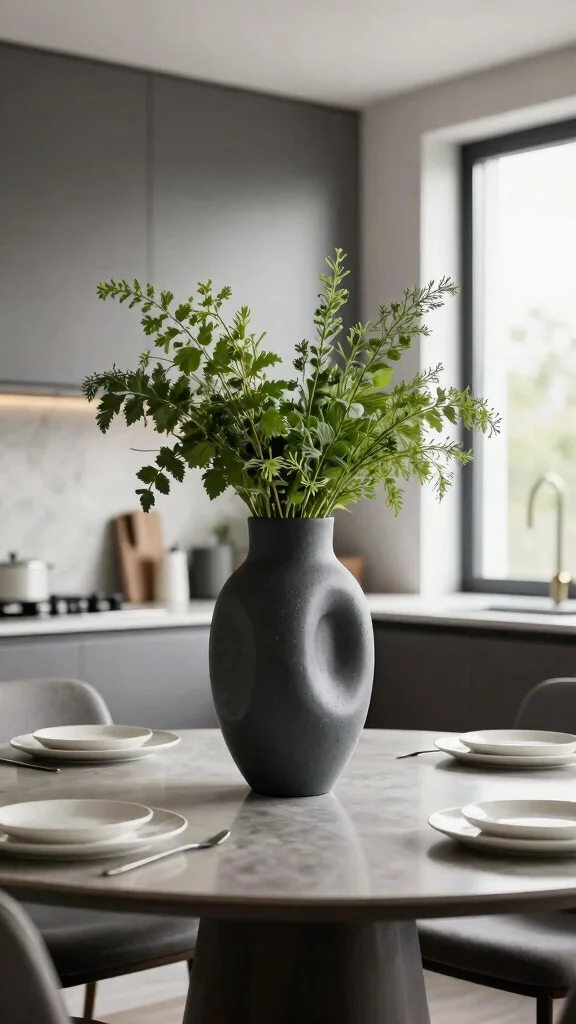 Centerpiece Inspiration: Use bold sculptural vases or clustered arrangements as unique kitchen centerpieces that draw attention and create a focal point.