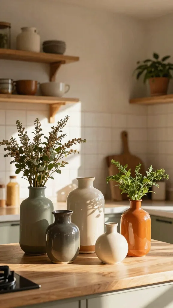 Bold sculptural vases can serve as captivating centerpieces in your kitchen. These artistic pieces draw attention and can enhance the overall design of your space. By selecting a vase that resonates with your style, whether modern or bohemian, you can elevate your kitchen’s personality.