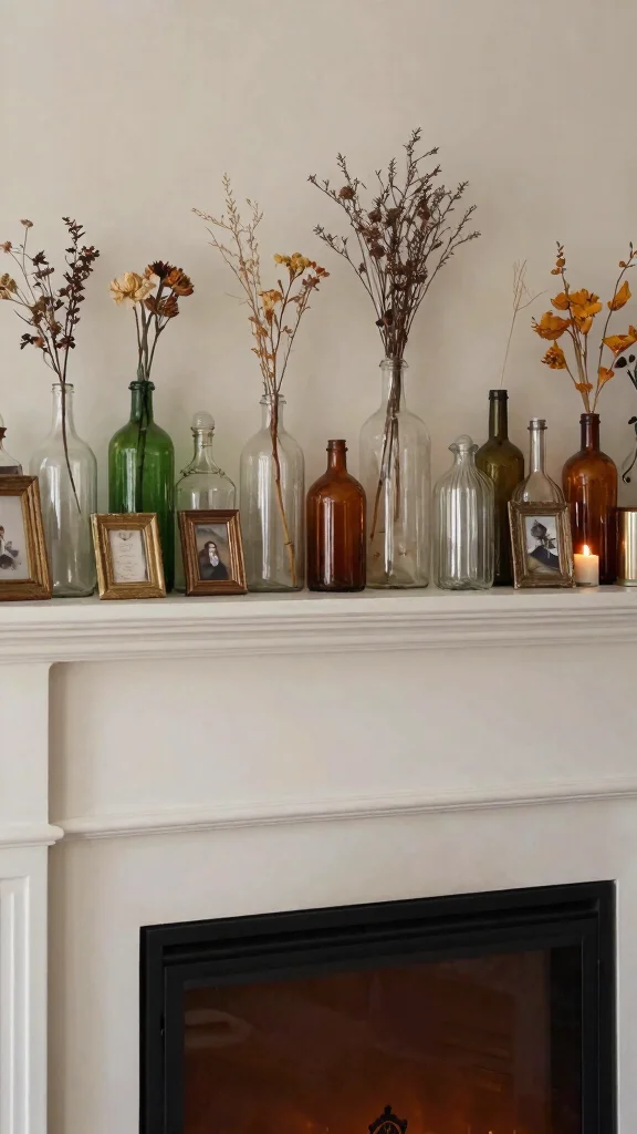 Vintage glass bottles can bring a charming, nostalgic touch to your mantle decor. Often unique and full of character, these pieces can be sourced from thrift stores or flea markets, making them an eco-friendly choice. Fill them with dried flowers or simple branches to achieve a rustic yet elegant look. Arranging bottles in varying heights creates visual interest and complements any decor style, from farmhouse to eclectic.