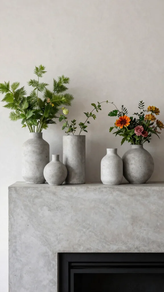 – Use multiple concrete vases in varying heights for a striking arrangement.