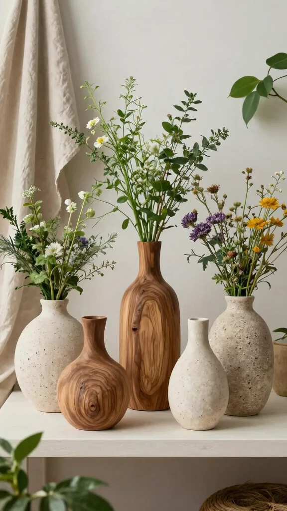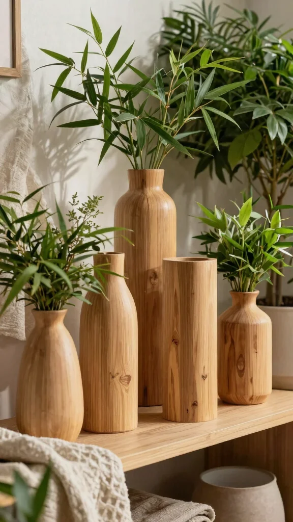 Incorporating bamboo and wooden vases adds a delightful touch of nature to your decor, combining style with sustainability. Bamboo, a rapidly renewable resource, and warm wooden elements create a cozy atmosphere that invites relaxation. Imagine a wooden vase surrounded by lush greenery, creating a serene nook in your home.