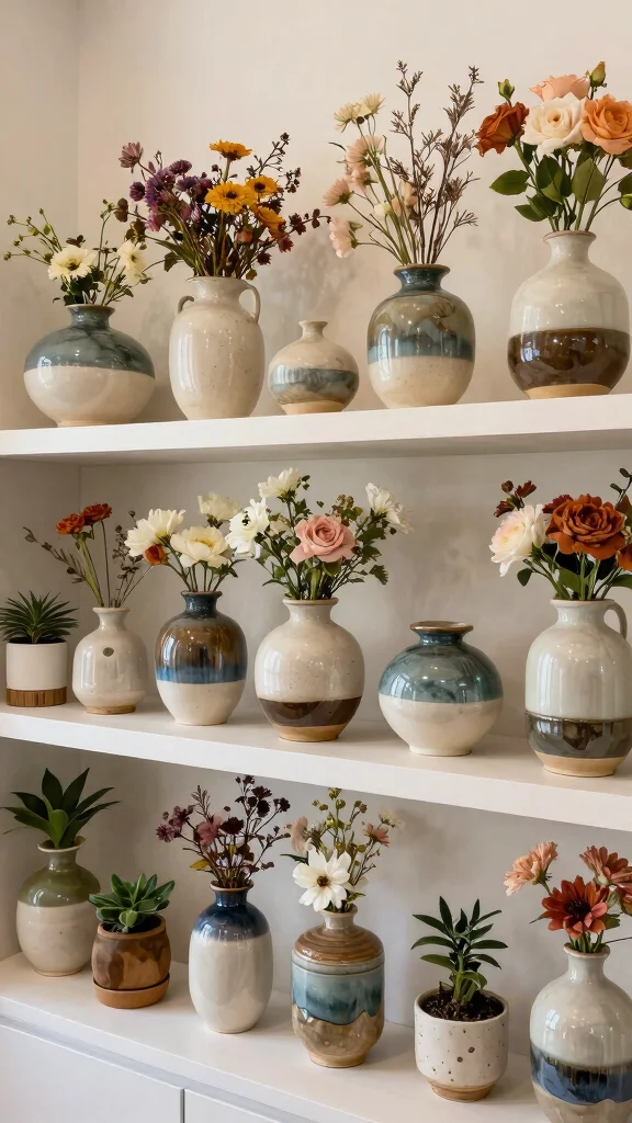 Refresh your shelf decor with seasonal vases to keep your space lively and inviting throughout the year. Vases that reflect seasonal themes bring dynamic energy to your home. Imagine vibrant spring blooms in a vase during the warmer months or cozy autumn colors as the leaves change.