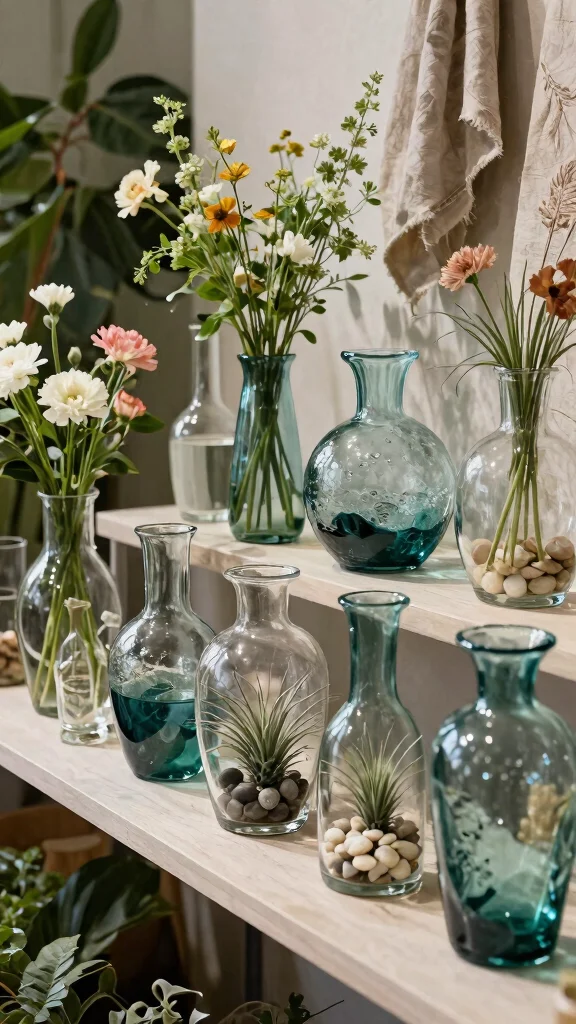 For effective styling, consider these simple ideas. Arrange vases of varying heights to create depth and visual layers. Incorporating botanical elements like air plants can add an organic touch. Keeping arrangements minimal allows the beauty of the recycled glass to shine through.