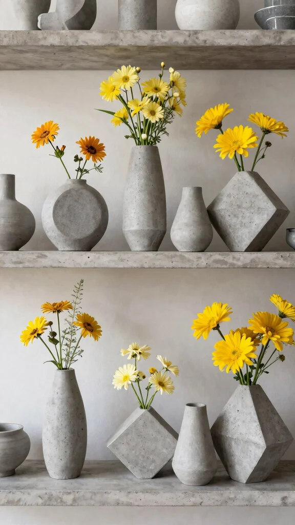 For effective styling, consider these practical tips. Keep surrounding decor minimal for a clean and uncluttered look. Using bold floral arrangements can create a stunning visual contrast against the concrete. Experimenting with various shapes and sizes can lead to an engaging display.