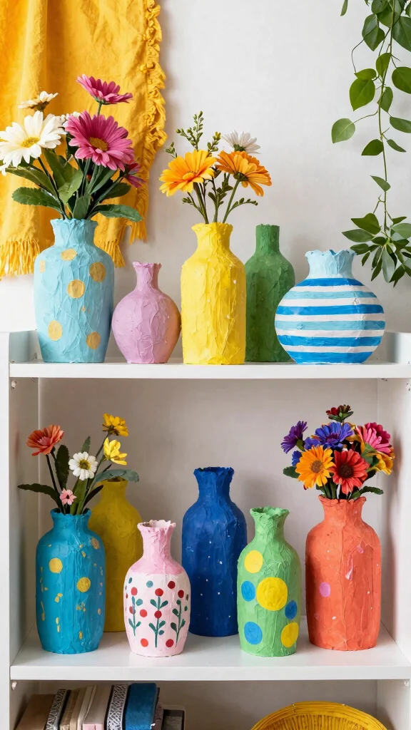 Paper mache vases are a playful addition to your shelf, promoting creativity and an eco-conscious lifestyle that brightens your home.