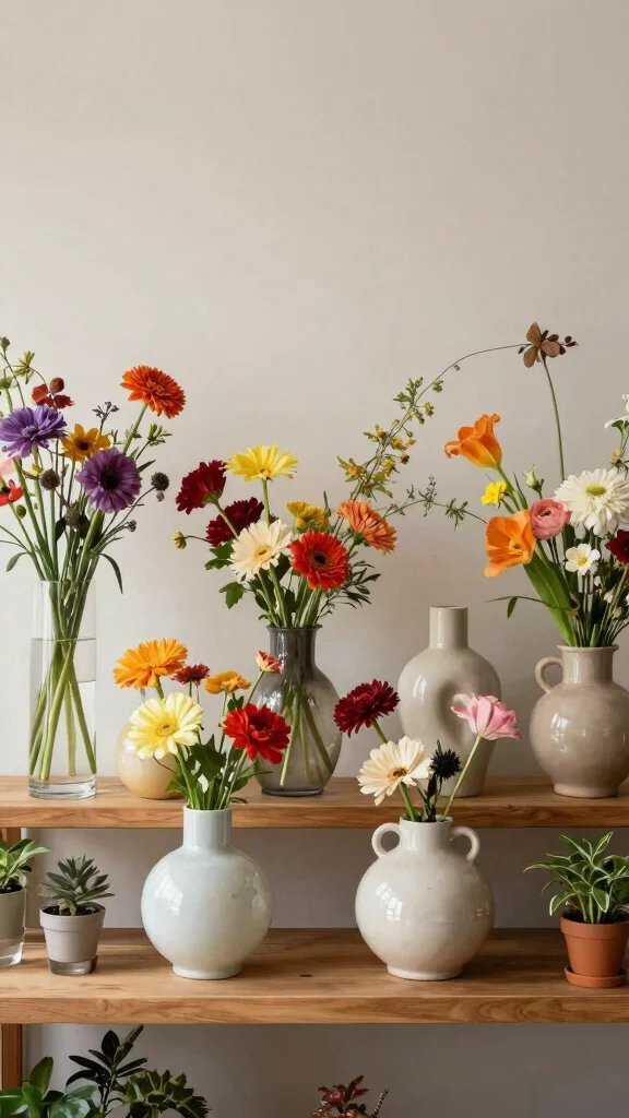 This thoughtful approach not only elevates your decor but also showcases the beauty of your chosen flowers through varied shapes and materials.