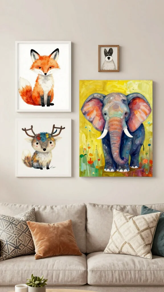 When incorporating animal portraits, choose animals that have personal significance or resonate with you. Mixing different artistic styles creates an eclectic vibe, allowing a regal horse portrait to shine alongside colorful abstract pieces. Ensure that larger artworks are placed at eye level for maximum impact.