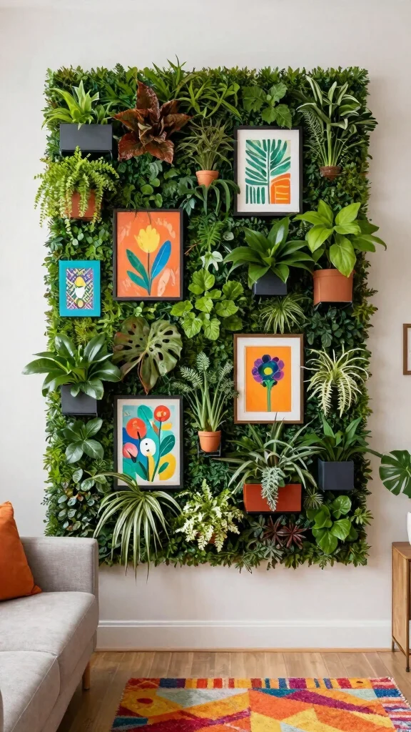 A vertical garden can be a stunning way to incorporate life into your living room while displaying art. Utilizing wall planters designed for vertical arrangements can introduce a refreshing feel to your space. Interspersing small artworks among the greenery creates a beautiful blend of nature and creativity.