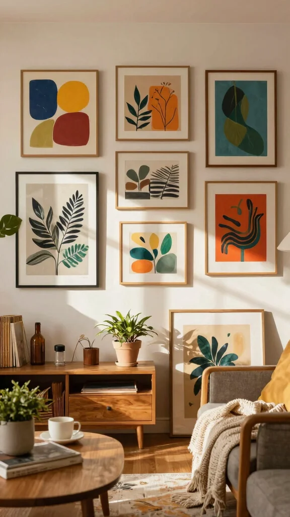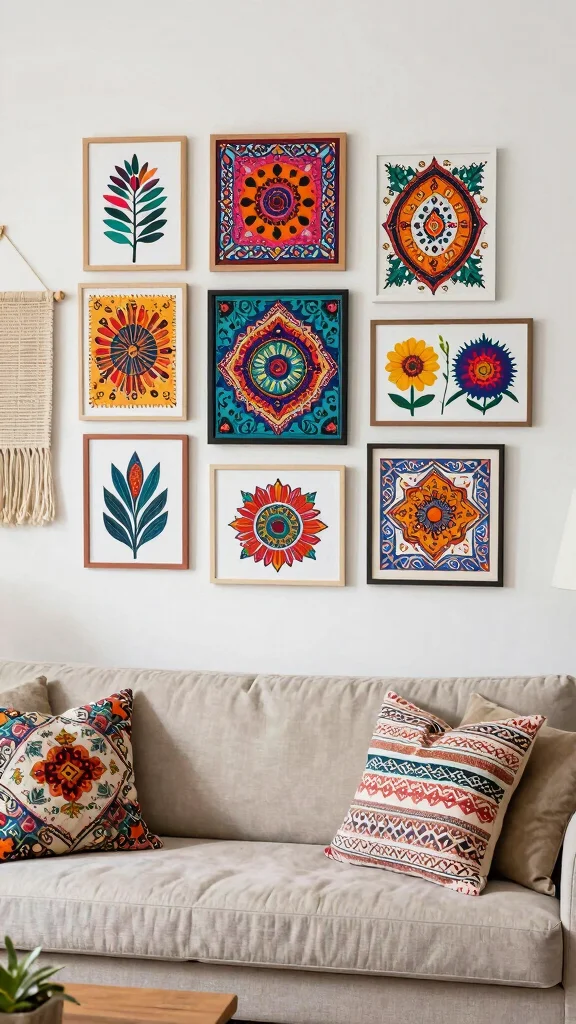 Bohemian-style prints are vibrant and colorful, perfect for creating a relaxed, inviting living room. These artworks often feature intricate patterns, ethnic motifs, and a rich color palette. By curating a selection of boho prints, you can craft a vibrant gallery wall that feels free-spirited and eclectic.
