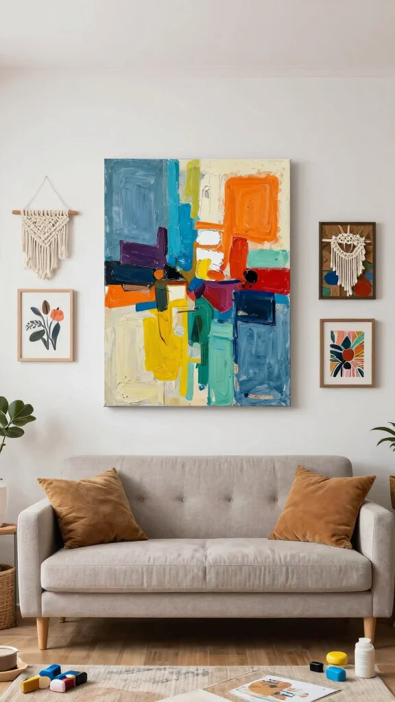 DIY art projects let you tailor your space with real personality. Start with a bold abstract painting or a few found objects to build a wall art collage living room that feels Bohemian and truly yours.