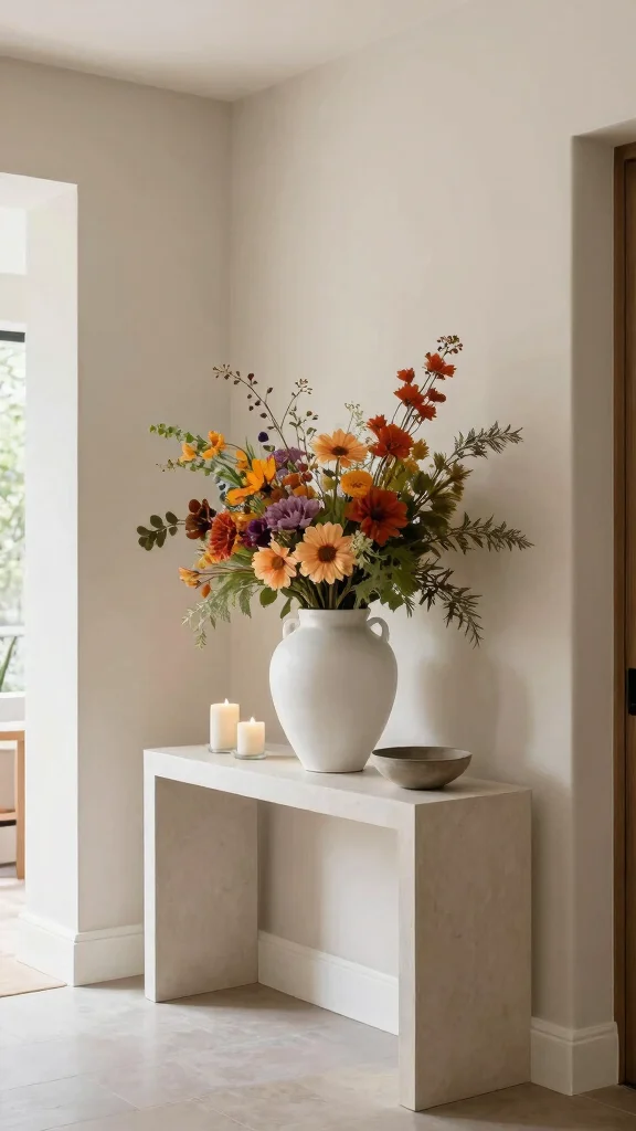 Place a white ceramic vase at your entryway for an inviting touch; consider adding seasonal decor for variety.