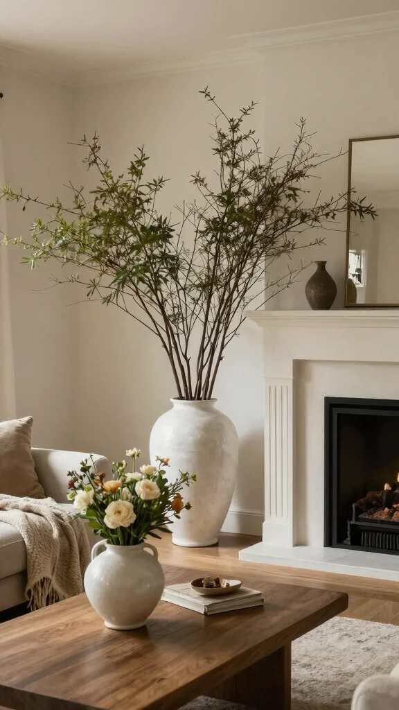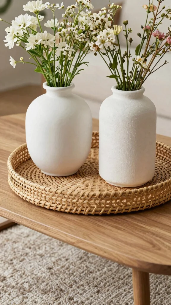 For instance, pair a matte ceramic vase with a glossy one to create a stunning contrast. Position them on a woven tray atop a natural fiber rug to invite warmth and comfort into the room.