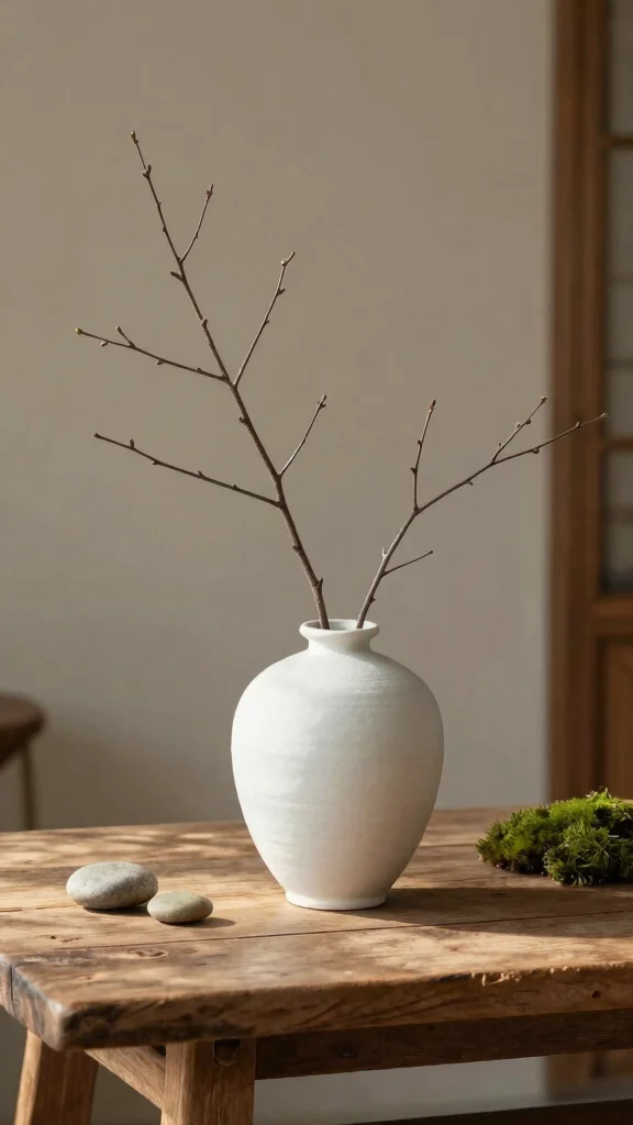 Incorporating nature into your decor is essential for achieving a calming aesthetic. White ceramic vases are ideal for showcasing natural elements like branches, twigs, or stones. Instead of conventional bouquets, consider using a single branch or a few twigs arranged in a slender vase.