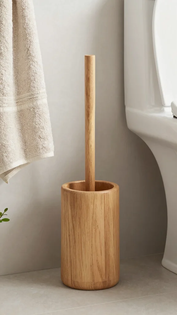 A wooden toilet brush holder elegantly conceals a necessary item while enhancing your bathroom’s aesthetic. Choose one made from natural wood to create a cohesive look that fits seamlessly into your decor. These holders serve their purpose while adding an unexpected touch of style, especially those designed with lids to keep everything neat and tidy.