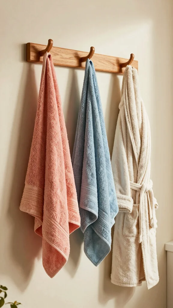 Create a gallery wall of hooks by incorporating a mix of sizes and shapes for an eclectic look. Position hooks near the shower or bath for easy access to towels and garments.