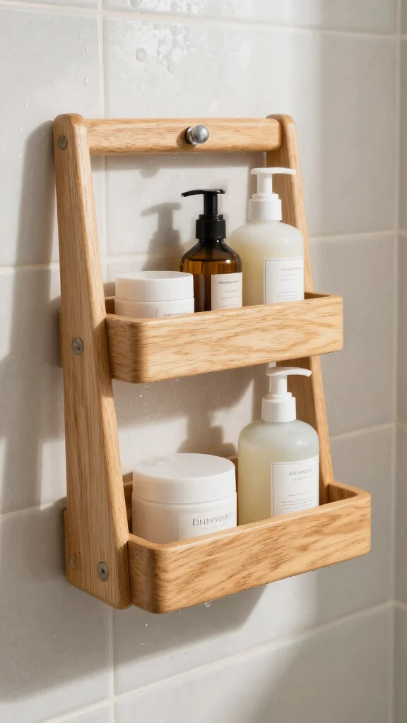 A wooden shower caddy not only enhances your bathroom decor but also adds a functional and stylish touch. Ensure that the wood is water-resistant for longevity and performance.